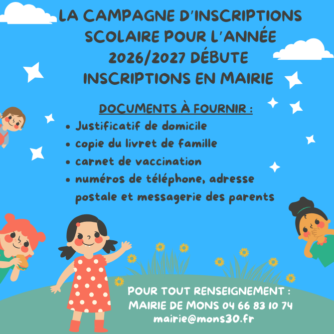 Accueil » Actualités » INSCRIPTIONS SCOLAIRES